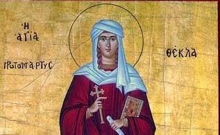 Святая первомученица равноапостольная Фекла родилась в городе Иконии. Она была дочерью знатных и богатых родителей и отличалась необыкновенной красотой. В 18 лет ее обручили знатному юноше. Услышав проповедь святого апостола Павла о Спасителе, святая Фекла всем сердцем возлюбила Господа Иисуса Христа и твердо решила не вступать в брак и посвятить свою жизнь Евангельской проповеди. Мать святой Феклы воспротивилась намерению дочери и принуждала ее выйти замуж за обрученного ей жениха. Обручник святой Феклы пожаловался правителю города на апостола Павла, обвиняя его в том, что он отвратил от него невесту.