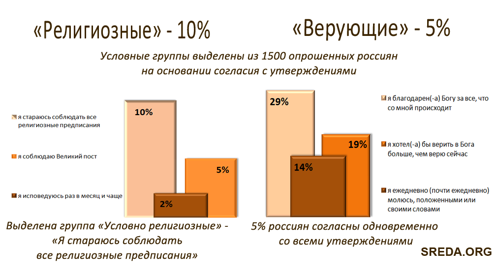 Это процент не всех участников опроса, а только тех, кто назвал себя православными и верующими в Бога.