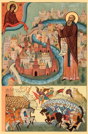 Преподобный Савва Сторожевский, Звенигородский чудотворец, очень молодым пришел в обитель преподобного Сергия Радонежского и принял от него постриг в монашество. Он был одним из первых учеников и сподвижников преподобного Сергия. Под руководством наставника преподобный Савва научился послушанию, смирению, хранению помыслов, воздержанию и целомудрию. Преподобный любил безмолвие, поэтому избегал бесед с людьми. Святой питался только растительной пищей, носил грубую одежду, спал на полу. Подвижническая жизнь преподобного Саввы снискала ему всеобщую любовь; он был поставлен во пресвитера и назначен преподобным Сергием духовником братии.