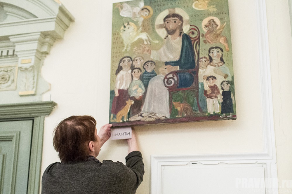 Корреспонденту портала «Правмир» удалось встретиться с художницей накануне открытия вернисажа. В зале было тихо, вдоль стен стояли еще не развешанные картины. Развеской занимался друг Черкасовой – поэт и телережиссер Константин Гадаев. «Вы знаете, он талант, он знает, как надо развешивать. Ведь он и сам художник, сын известного скульптора Гадаева. Я бы без него ни за что не справилась!» — тихо говорит Елена.