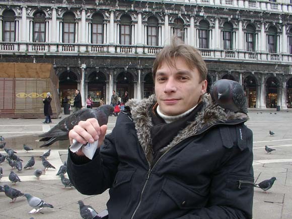 И он рассказывает забавные случаи из своих путешествий: как, катаясь с другом на машине по Италии, они в нарушение всех правил дорожного движения пытались проехать в знаменитый собор, и полицейский, узнав, куда они едут, не стал их штрафовать, а, наоборот, остановил движение, чтобы русские туристы смогли добраться до храма; или как, когда он заблудился в незнакомой стране, вдруг неожиданно позвонила подруга, оказавшаяся в этот же момент в том же городе.