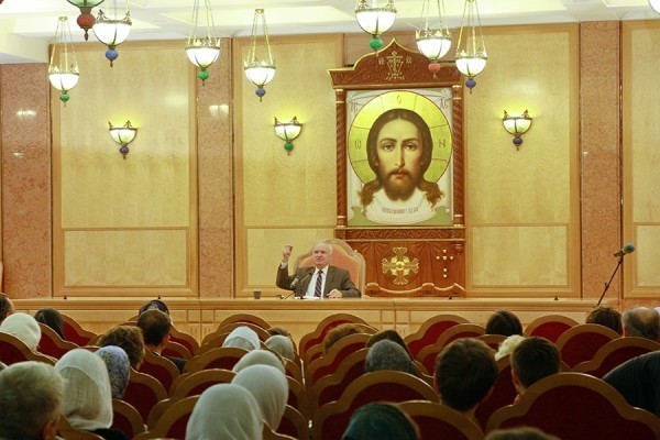 Мы прекрасно понимаем, что духовная жизнь человека состоит из выполнения заповедей Евангелия и покаяния – это верно, это знает даже самый необразованный человек. Но как только мы оказываемся перед лицом того мира, который нас вопрошает, нам нужны знания, объяснения, аргументация, доказательства. Поэтому неверующий человек, хотя и высокообразованный, он не знает, куда идти. Вот он – неверующий. Спрашиваю: «Какой смысл вашей жизни?» Сразу вопрос: «Ты неверующий? Значит, атеист». А вы знаете, кредо атеизма какое? – Верь, человек, что тебя ожидает вечная смерть. Ах, вечная смерть – тогда не все ли равно, как мне жить. Это смысл жизни – бессмыслица. Если каждая личность не имеет своего вечностного существования, если все кончается со смертью тела, какой же смысл тогда в этой жизни, в этой деятельности, скажите? Скажет: «для других». Простите, они также погибнут, и все умрут. Зачем тогда подкидывать дрова в костер?