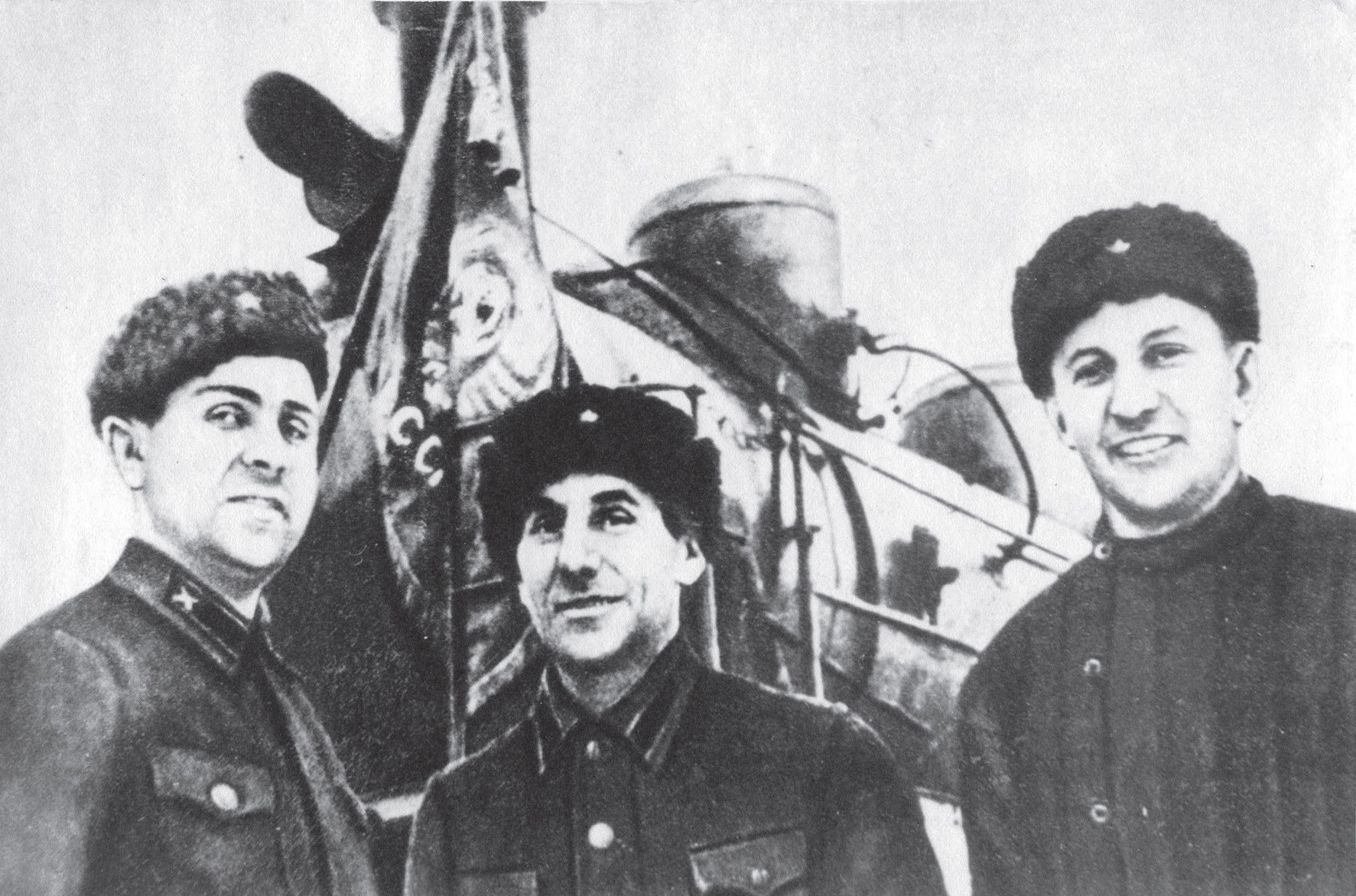 Бригада, завоевавшая право провести первый поезд из Ленинграда на «Большую землю» (слева направо: А.А. Петров, П.А. Фёдоров, И.Д. Волков). 1943 г.