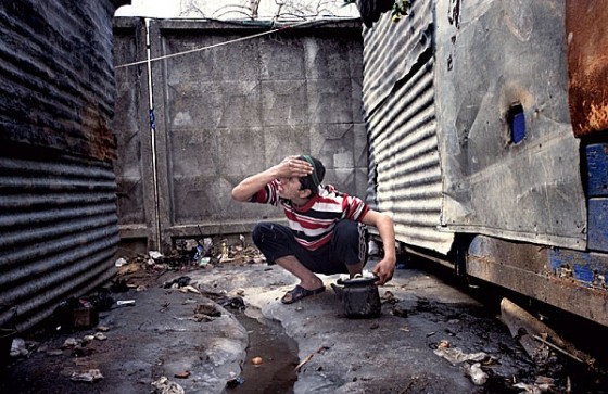 Я захожу внутрь. Обычный торговый центр, где днем снуют покупатели мобильных телефонов, по ночам превращается в общагу. В проходах на положенных на пол матрасах, завернувшись в одеяла, спят сотни работяг. Кто-то играет в карты, кто-то идет с чайником, но в основном уже дрыхнут. Тут тепло и, как ни странно, уютно. Думаю, здесь даже лучше, чем в квартирах, где живет большинство работников рынка — по 25 человек на трешку, с круглосуточной очередью в туалет.