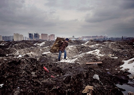 Пять утра, темно, холодно, мокрая грязь на всем. По дороге движутся черные нахохлившиеся фигуры — таджики и узбеки спешат на работу.
