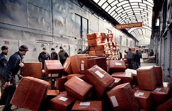 Московский Черкизовский рынок. Бесконечные стада автобусов, каждый день привозящих сюда десятки тысяч челноков. Многокилометровый лабиринт рядов, этажами уходящих куда-то вверх, сплошь завешенных черной одеждой; миллионы пар штанов и кожанок — и тысячи смуглых лиц, которые, как призраки, шепчут из своих пещер: «Джинсы, дубленка». Улицы вьются под уклон, кажется, что спускаешься в какое-то подземное царство. Это целый город, десятки, если не сотни тысяч людей.