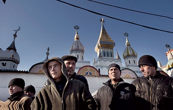 Мирза ведет нас к местной мечети — лучшей, какую я видел в жизни. Кривая фанерная хибара с покрышками, прижимающими шифер на крыше. Внутри пусто, фанерные колонны, фанерный михраб — ниша, обращенная в сторону Мекки, окно — старая рама с какой-то дачной веранды, фанерный пол, затянутый некогда белой тряпкой. Мне кажется, если бы Аллах искал самое трогательное место для молитвы, он выбрал бы эту хибару, выстроенную гастарбайтерами на московском пустыре — без команд сверху, без муллы и денег.