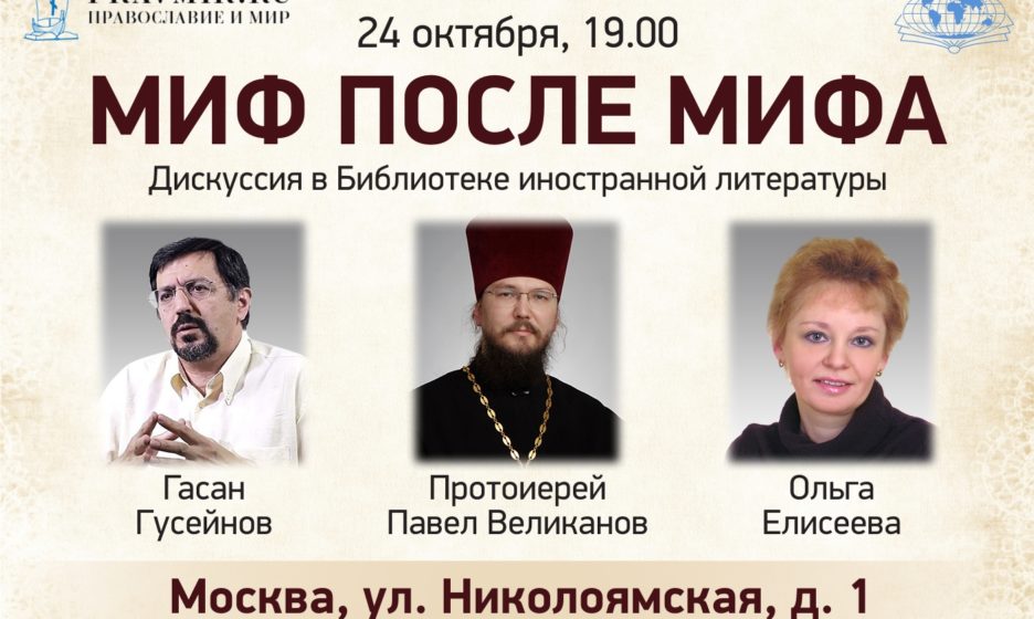 Об этих и других вопросах 24 октября в 19.00 в Большом зале Библиотеки Иностранной литературы будут говорить Гасан Гусейнов, протоиерей Павел Великанов и Ольга Елисеева.