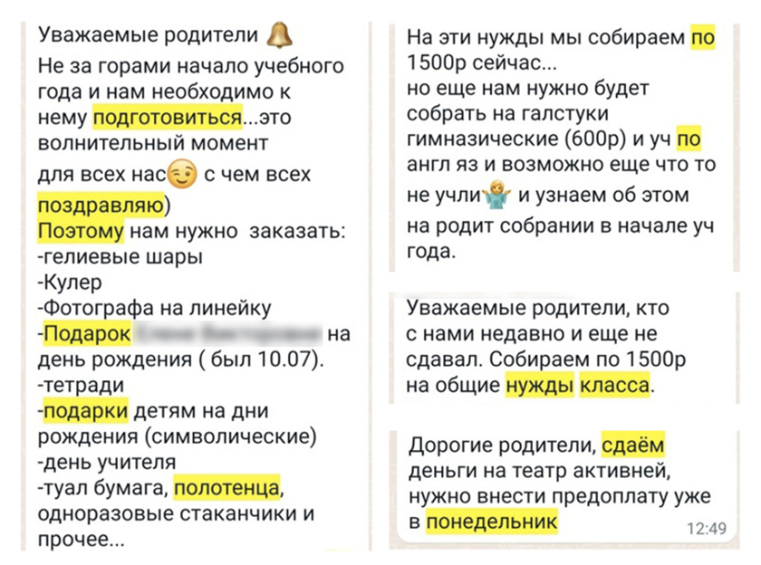 Но в классе 40 человек, с каждого по 6 000 — это, извините, почти четверть миллиона. И на какие «нужды»?