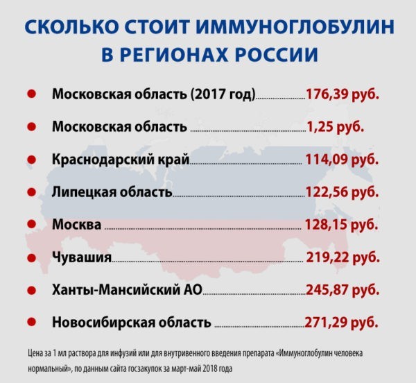 – Официальная причина по версии Минздрава Московской области – невозможность купить иммуноглобулин. Однако математика, которую мы обнаруживаем на портале госзакупок, а это открытая информация, демонстрирует намеренный саботаж министерства. А как иначе назвать ситуацию, когда цена Минздрава в разы занижена по сравнению с закупочными ценами других региональных органов.