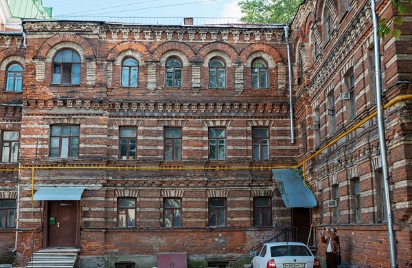 От редактора: в угловом подъезде этого здания я училась лет эдак 15 назад. К 1999 наша часть здания стала совсем опасной для нахождения там школы, поэтому мы оттуда переехали. По слухам, которым в то время я поверила, а сейчас уж и не знаю, как опровергнуть или уточнить, «сыпаться» здание стало после того, как какую-то другую часть купил какой-то нувориш и решил там сделать евроремонт…