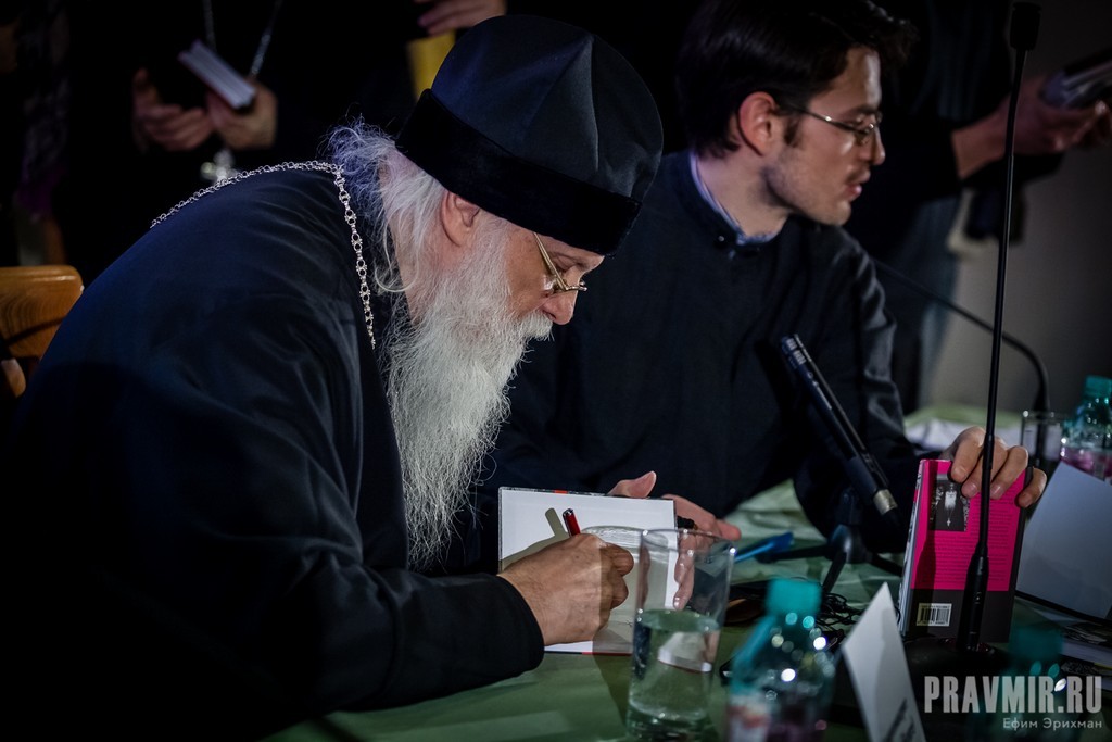 В рамках встречи была проведена презентация книг отца Гавриила, вышедших в издательстве Сретенского монастыря и посвященных страстям уныния, гнева и чревоугодия. Книги впервые опубликованы в новом переводе, и в них схиархимандрит Гавриил рассматривает упомянутые недуги как одни из главных болезней нашего времени, а также рассказывает о способах борьбы с ними.