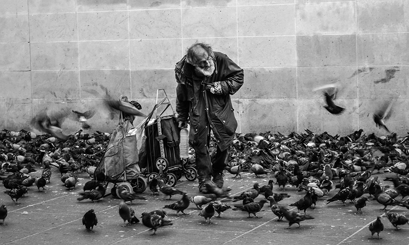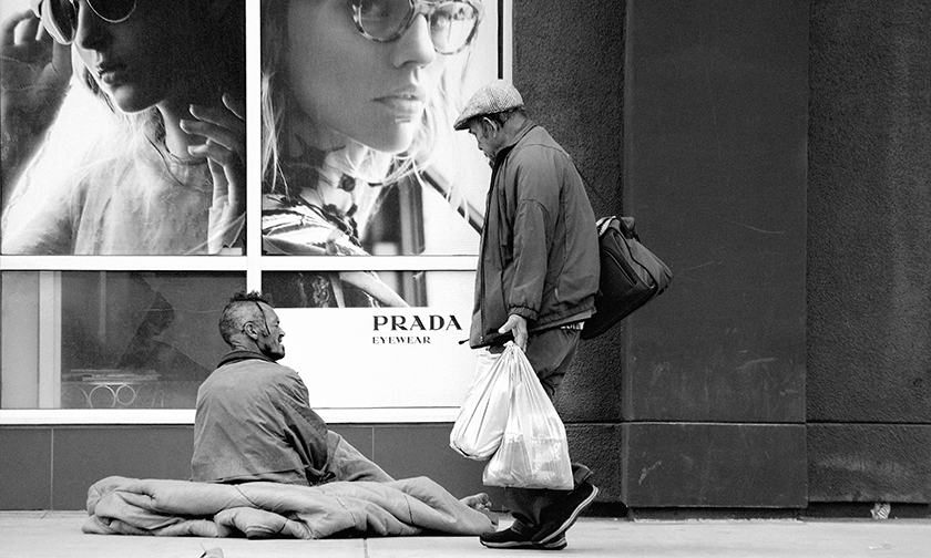 Если жизни бездомного ничто не угрожает, купите ему еды, стакан горячего чая. Деньги лучше не давать, человек может потратить их на алкоголь.
