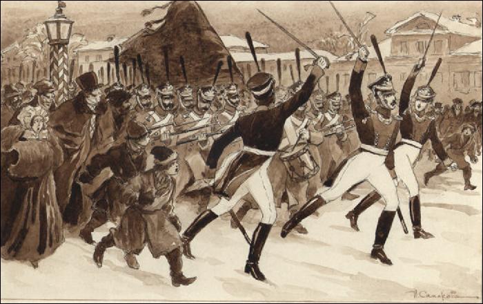 А тут – офицерам из тайного общества удалось сагитировать до трех тысяч солдат и многих обывателей, потому что доверие к власти пошатнулось. В том числе – и к архиереям, которые, как кричали в толпе, «на двух неделях двум императорам присягали».