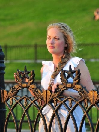…Студентка Финансового университета при Правительстве РФ. На кофточку приколота георгиевская ленточка — идет поздравлять ветеранов. Читает на камеру отрывок из «Василия Теркина».