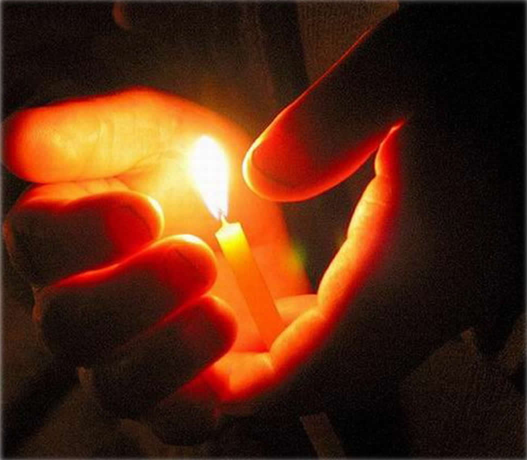 Ну, а если уж совсем ничего под рукой нет, придется использовать сами руки, прикрывая свечу от ветра ладонями.