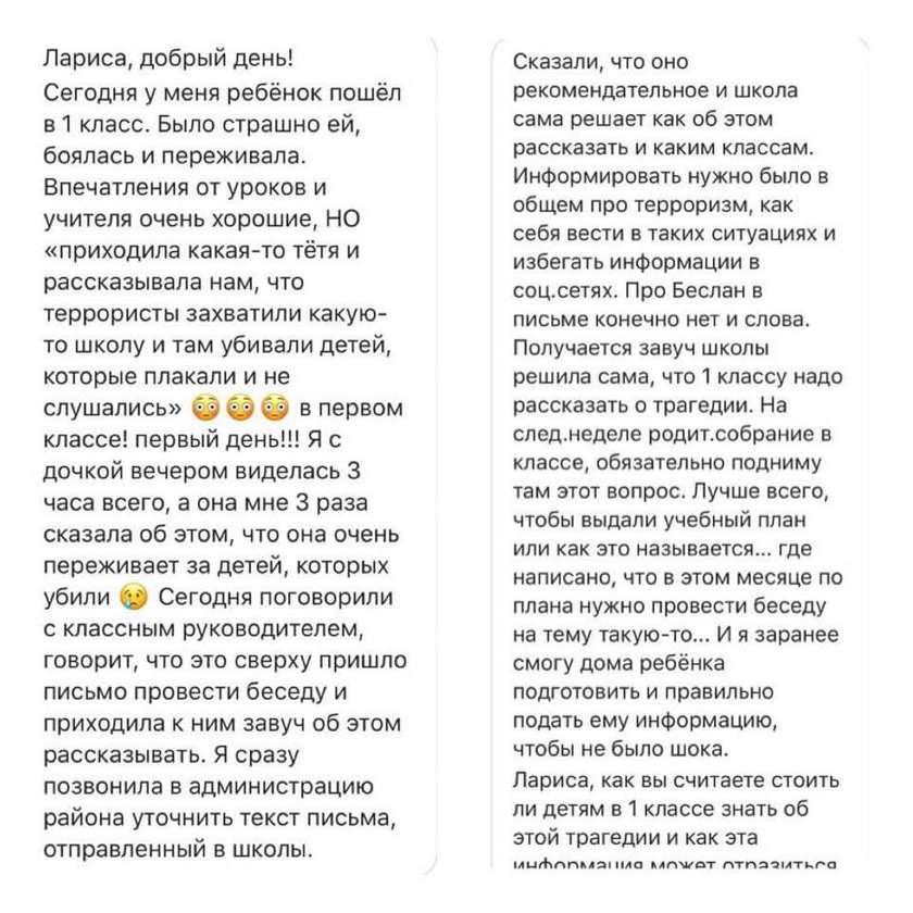 Если бы я знала, что такое будет, я бы сделала пост заранее, чтобы вы сами поговорили с детьми, и это все не привело к такой травме. Но нам опять приходится расхлебывать. <…>