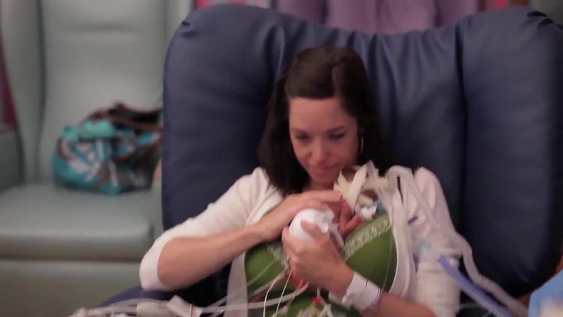 Первые 107 дней своей жизни малыш провел в отделении интенсивной терапии. С помощью медсестры, проводов и медицинского оборудования Линдси может держать сына на руках.