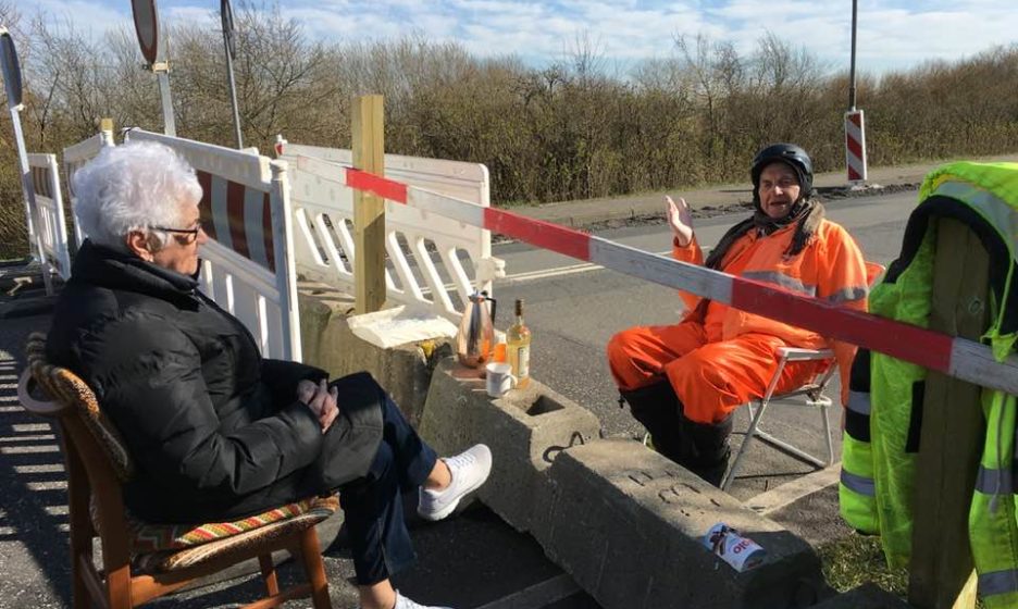 Инга Расмуссен едет на границу на машине из своего города Галлеус, а Хансен добирается на велосипеде из Сюдерлюгума.