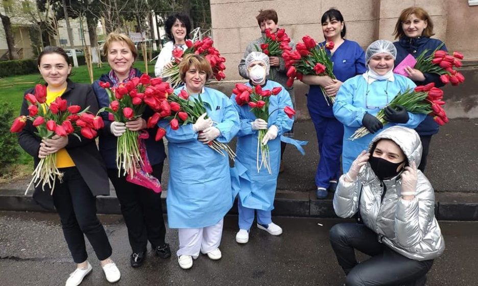 Все букеты привезли в Тбилиси и подарили врачам-инфекционистам и волонтерам. В каждом букете была записка: «Гордимся вами, спасибо!»