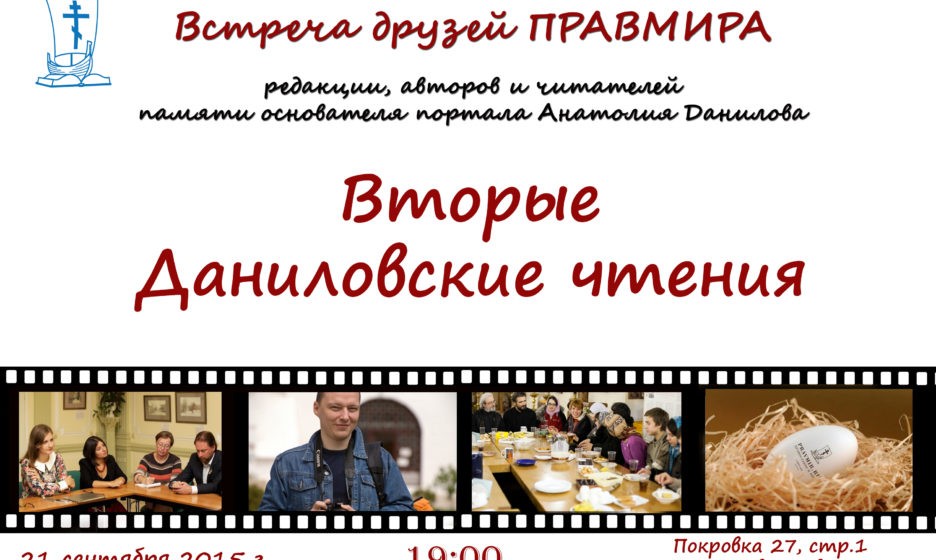 21 сентября в 19.00 на Покровке (Покровка 27 стр 1) состоятся вторые Даниловские чтения — большая встреча авторов и редакции Правмира.