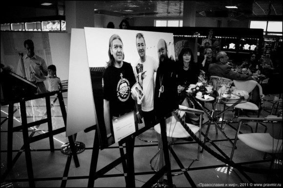 Как и положено хорошему светскому мероприятию, его начало задержали на полтора часа, а к журналистам отнеслись с нервной вежливостью. Гости коротали время кто за вином (большинство), а кто (меньшинство) – за рассматриванием фотографий, посвященных православной жизни (конечно же).