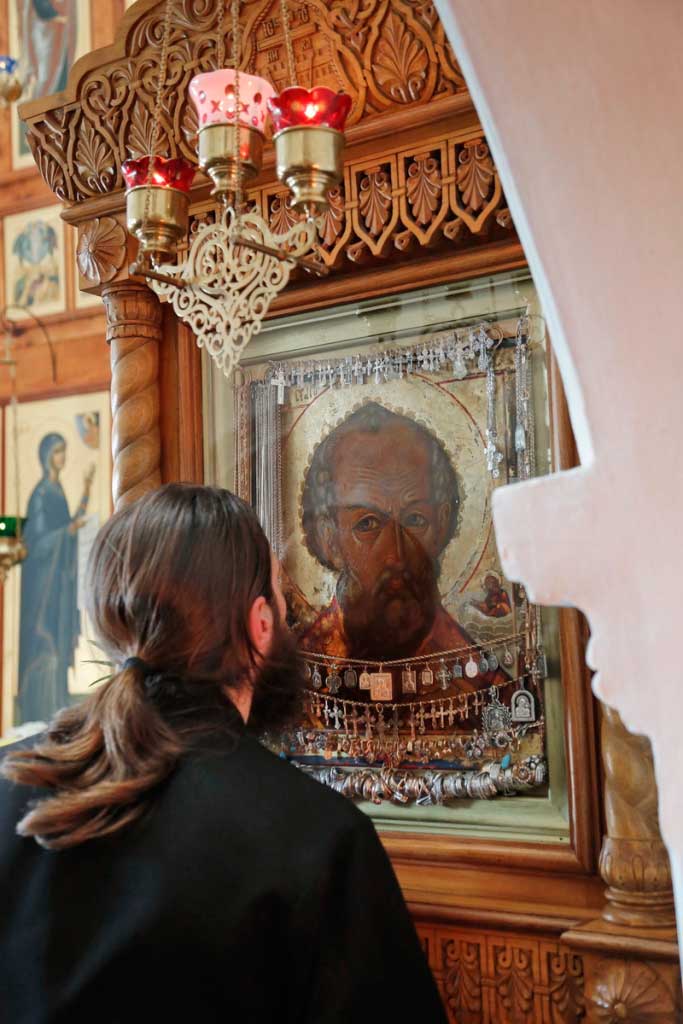 Несмотря на будничный день, в обители было много молящихся, приехавших почтить великого Угодника Христова.