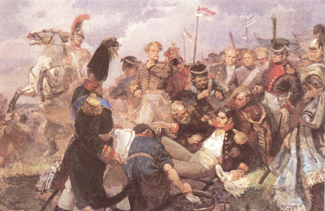 Фёдор Николаевич Глинка – писатель, богослов, офицер, долгожитель – долго можно продолжать перечисление его воплощений – фиксировал ход сражения. И вот его лаконичный рассказ о кульминации Бородина: «Густой лес, на нашем левом крыле, стал за своих и препятствовал быстроте наступления неприятельского; но в 7 часов утра главные силы его выказались боевыми колоннами. Понятовский идет в обход на старую Смоленскую дорогу. Маршалы (Ней и Даву) атакуют со 130 орудиями. Сводные гренадерские баталионы отстаивают батареи. Граф Воронцов ранен. Генерал-лейтенант Тучков отбрасывает поляков от старой Смоленской дороги и смертельно ранен. Неприятель захватывает реданты, Коновницын отбивает их назад. Тучков 4-й убит. Князь Голицын с кирасирами врубается во французскую конницу».