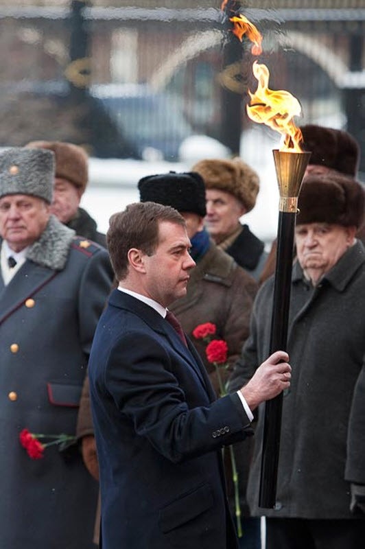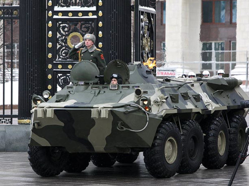 Бронетранспортер везет вечный огонь обратно к Кремлю.
