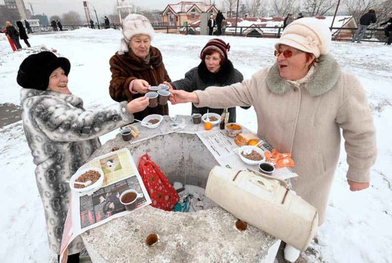 Женщины поднимают тост за защитников отечества во Владивостоке.