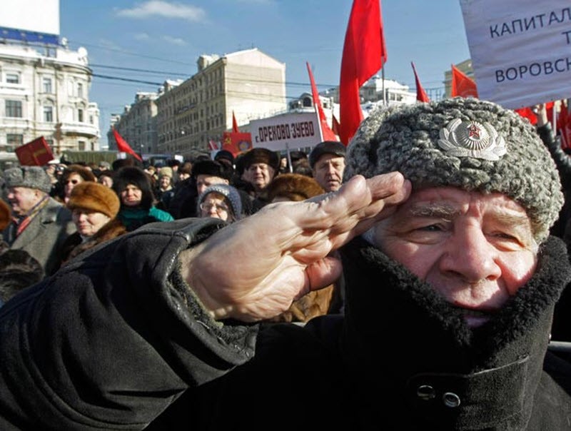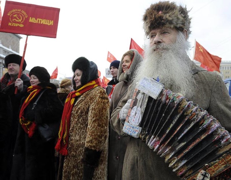 Сторонница коммунизма на митинге в Москве.