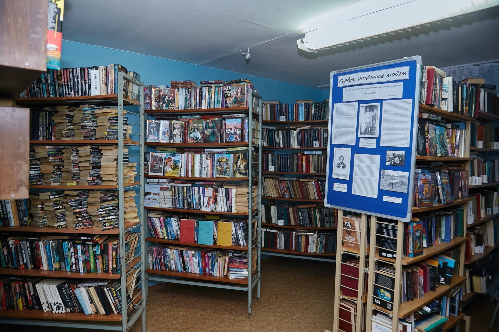 В ДК неуютный зал с синими стенами. В мастерской на полках поделки, как раз из шерсти. В маленькой библиотеке советские книги, а из современного только газета «Голос Удомли» депутата-правдоруба местной думы Дмитрия Подушкова. Он присылает ее сам.