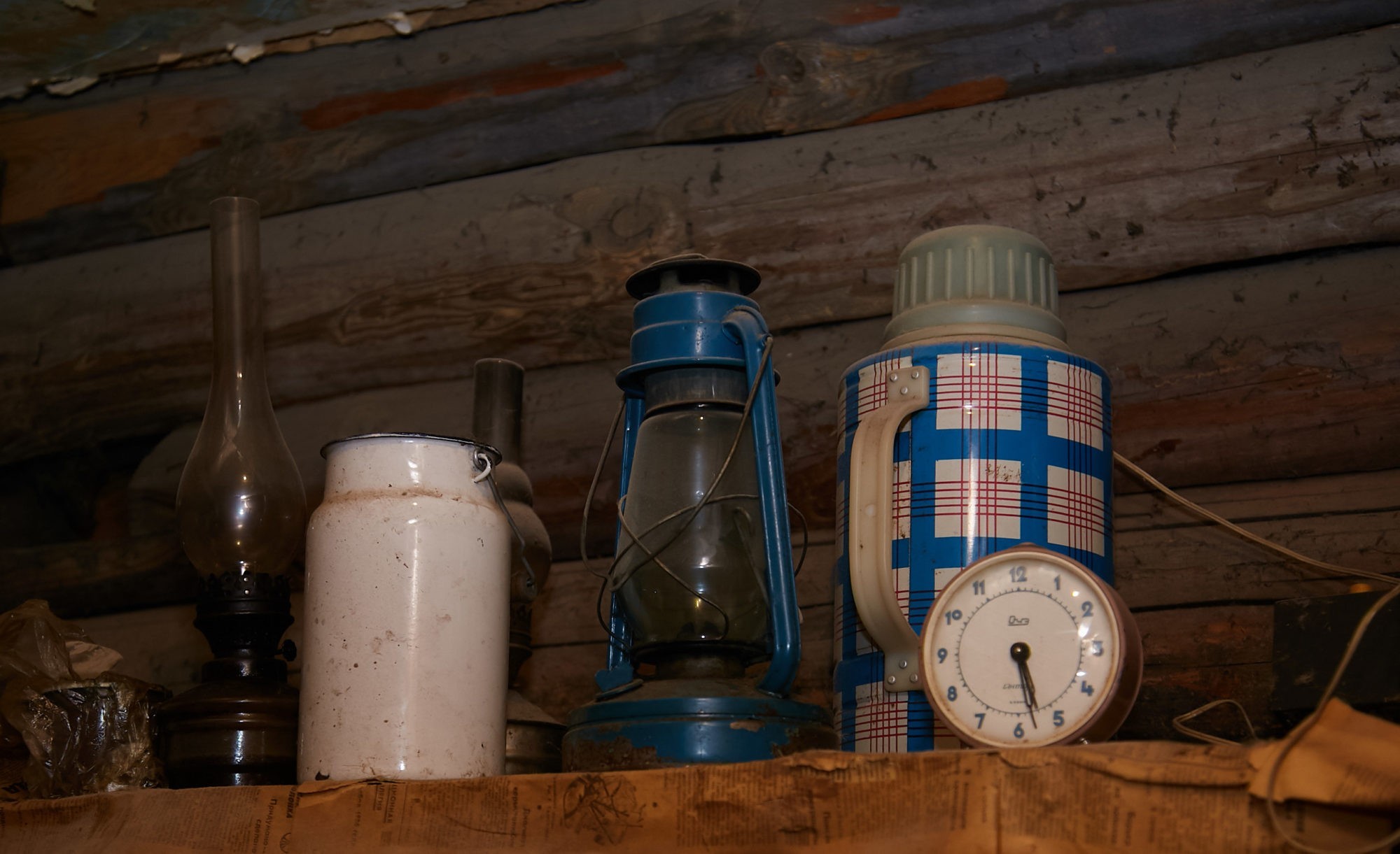 Саша ведет нас домой, где в сенях показывает керосиновую лампу для дома и «летучую мышь», с которой можно гулять по вечерам. За чаем Саша и его жена Валя рассказывают, что в их деревне нет освещения с тех пор, как закрылся льнозавод: никто не хочет брать на баланс уличные лампы. Когда темнеет, мы выходим с фонарем на батарейках.