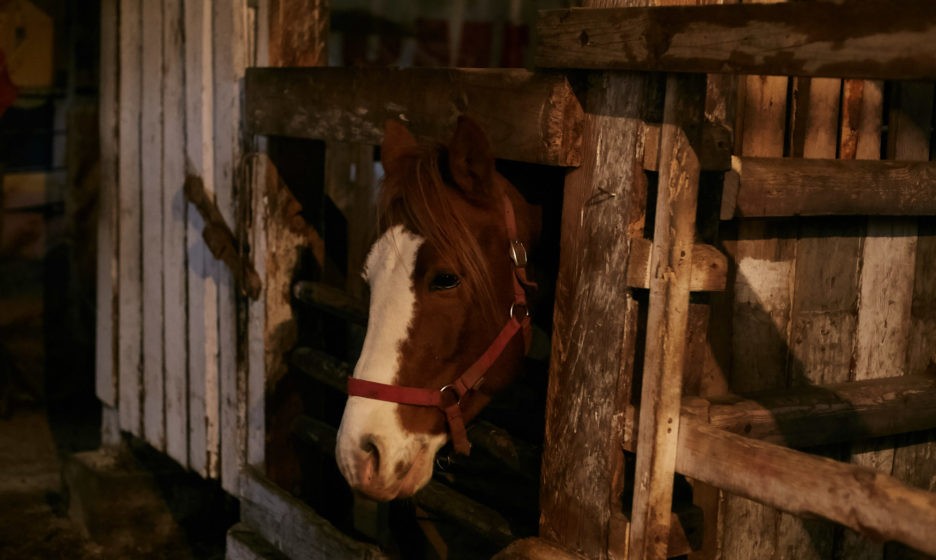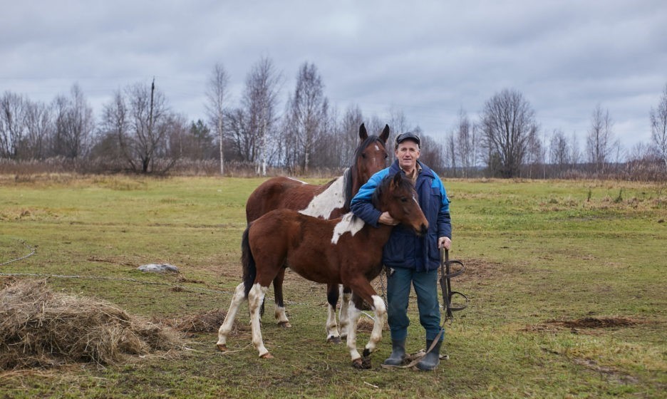 Саша живет в деревне Новково. Она в 1,7 км от Еремкова, но если ехать на машине, то расстояния между ними незаметно. Саша открывает конюшню, внутри начинается суета. Белые голуби воркуют на балках, поглядывая на людей. Кони выставляют в проход головы.