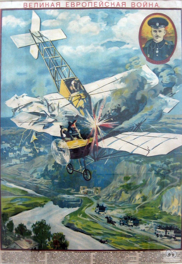 Основоположник высшего пилотажа, прославленный летчик-испытатель, первый исполнитель «мертвой петли». 25 августа 1914 года в разгар первой Галицийской битвы командир 11-го авиационного отряда штабс-капитан П. Н. Нестеров впервые в практике боевой авиации совершил таран самолета противника. Увидев австрийский аэроплан «Альбатрос», ведущий аэроразведку наших позиций, Нестеров решил вступить с ним в бой и, поднявшись в воздух, атаковал его. Русский и австрийский летчики долго вели друг по другу огонь из револьверов, пока у Нестерова не кончились патроны. Тогда Нестеров решил таранить «Альбатрос» своим «Мораном». На высоте 2000 метров он направил аэроплан сверху на противника. Поравнявшись с ним, он обрушился на врага вертикально, носом вниз. «Альбатрос» опрокинулся и стал падать. Аэроплан Нестерова был невредим и благополучно продолжал полет, но толчок от удара был настолько сильным, что Нестеров погиб от перелома позвоночника.