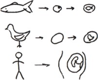 Начну несколько издалека. Некоторые низшие организмы могут размножаться почкованием или делением пополам. Отщипнул веточку от дерева, посадил в землю, глядишь, новое дерево выросло. Но так бывает только у растений. С животными все уже сложнее. Давайте взглянем на более высокоразвитые организмы, например, рыб. Оплодотворенная икринка находится вне материнского организма. Даже зачатие, то есть оплодотворение, происходит вне матери-рыбы. В икринке есть все необходимое для того, чтобы в ней развивался малек, который потом «вылупится» из икринки. Икра является очень ценным питательным продуктом, потому что там заложены все вещества для роста будущей рыбешки. Никому в голову не придет сказать, что зародыш в икринке — это часть материнского организма. Подымимся еще выше, взглянем на птиц. У них зачатие происходит уже в организме матери. Курица снесла яйцо, и в этом яйце есть все необходимое для того, чтобы в нем развивался цыпленок. Но только одних веществ, заложенных в яйце, уже мало для роста цыпленка, ему еще нужно тепло, поэтому курица высиживает яйца. Вновь видим, что на всем этапе развития зародыша в яйце он не может считаться частью материнского организма, он четко отделен от него твердой скорлупой. Подымемся еще выше, взглянем на млекопитающих. Это еще более высокоразвитые животные, и для развития зародышей требуется еще больше условий. Трудно представить, какое нужно яйцо, в котором бы мог развиваться слоненок. Сложность организма требует много большего, чем у птиц и рыб, времени развития зародыша, а, следовательно, и веществ в это яйцо надо заложить в несколько раз больше. Поэтому даже для такого малого животного, как мышь, потребовалось бы такое яйцо, которое мама-мышь никогда бы не смогла снести, оно должно было бы быть не меньше самой матери. Поэтому Господь устроил иначе: Он посадил это яйцо, эту икринку в утробу самой матери. И ребенок, рав но как и какой-нибудь жеребенок или котенок, в утробе матери находится, словно в мягком яйце, которое присоединено к материнскому организму, но не сливается с ним.
