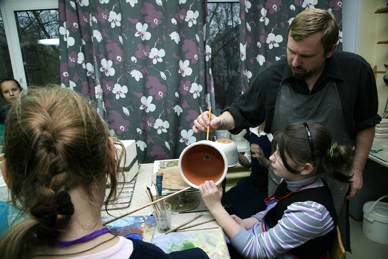 Керамика входит в учебный план вместо одного часа технологии с 1 по 4 класс. Те, у кого есть желание, занимаются керамикой дополнительно, в студии. На студию лепки и росписи по фарфору ходят дети с 1 по 11 класс.