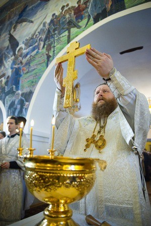 В конце праздничной литургии священство и верующие либо собираются у наполненной водой купели, либо совершают торжественную процессию к близлежащему водоему или водному источнику. Чин Великого Водоосвящения состоит из трех частей: пения особых торжественных песнопений – тропарей, чтения библейских текстов и особых молитв.