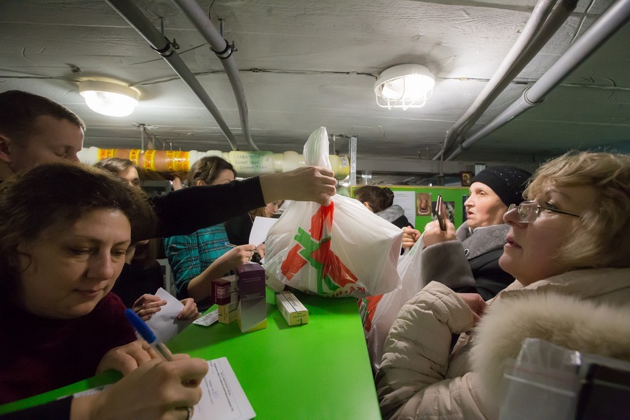– У нас есть специальные ведомости выдачи продуктов и лекарств, в которых указаны все возможные наименования. Одна женщина пришла с этой накладной и говорит: «Мне и обезболивающие, и жаропонижающие, и успокоительные, и т. д.» В общем, весь список прочитала. Однажды пришла мама с ребенком. Они долго ждали своей очереди, маленькая девочка перенервничала и стала плакать. Все бросились ее утешать, давали конфетки, печенье, игрушки. А она – ни в какую. Истерика у ребенка и все. Потом кто-то из волонтеров принес бутерброд с колбасой. Дали малышке и она сразу успокоилась.