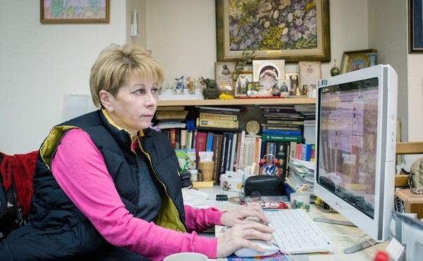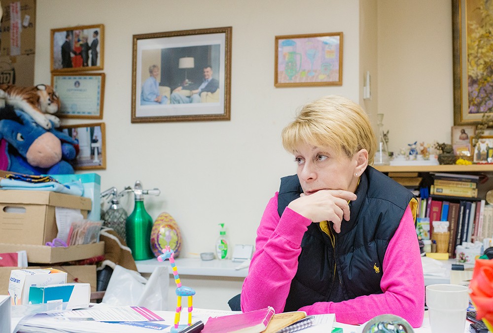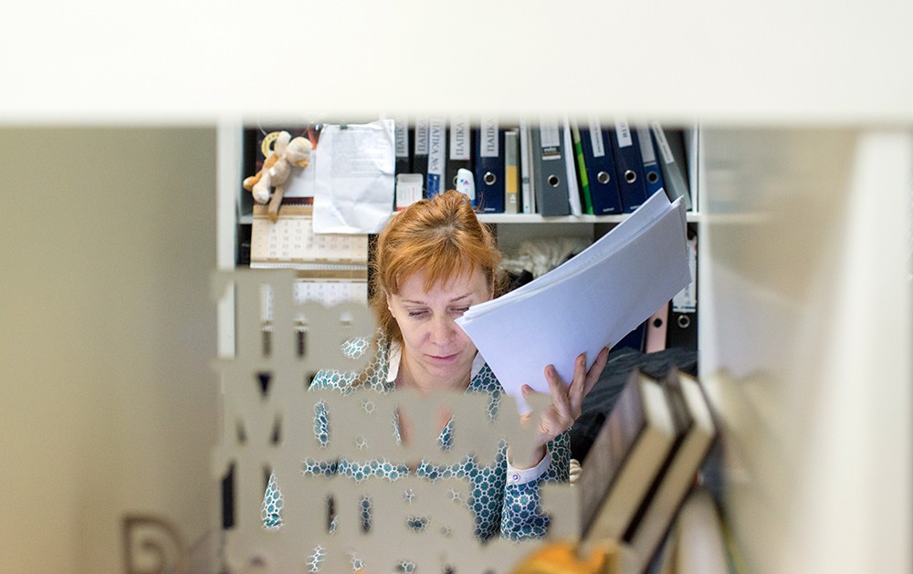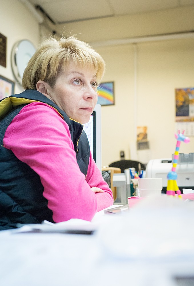 Внутри тесно (и за эти-то несколько комнаток хозяин какое-то время назад в разы поднял арендную плату!), нас даже просят немного подвинуть стулья, на которых мы сидим, чтобы в дальний угол комнаты можно было проходить, не мешая – там тоже работает сотрудница.