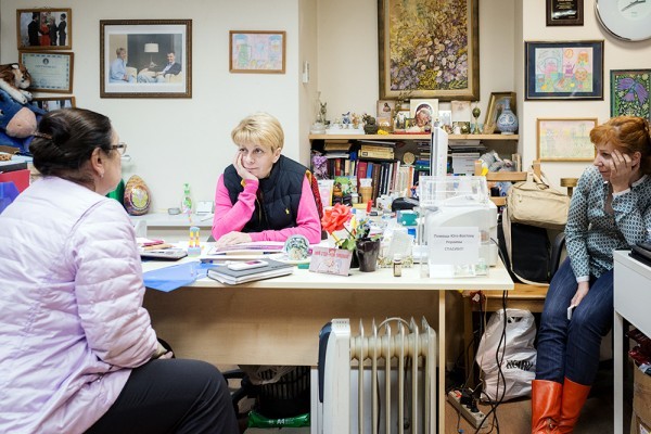 А ещё здесь оказывают юридические консультации. За те несколько минут, пока мы ждали Елизавету Петровну, пришла семья из Донецка, мама и бабушка:
