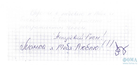 Мамка, пишет Тебе Гном. С любовью к Тебе и уважением благодарности без границ и бесконечности. Мам, прости меня, что так долго не давал о себе знать, не ругай меня. Просто я залез не туда, куда нужно. Я поднял тему, с которой я к тебе обращался, вернули мои два года и еще год добавили. Я мог бы обратиться к Тебе за помощью, но не стал этого делать, знал, что Ты могла помочь мне, дав своего юриста. Дело завели в Замоскворечье и судили там же. Как ты знаешь, сам я писать не могу, прошу других. В данное время диктую, а сам плачу.
