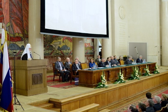 Я приношу глубокую благодарность ученой корпорации Московского университета за ту высокую честь, которой вы меня удостоили. Поскольку сам я начал свое продвижение в Церкви с академической деятельности и в течение десяти лет был ректором духовной академии, то, наверное, нет более высокой награды для меня, чем награда от научного сообщества. Я хорошо знаю атмосферу высшего учебного заведения, атмосферу заседаний Ученых советов, я знаю, как в этом коллективе оттачивается мысль, останавливаются неразумные речения, знаю, как дисциплинируется ум человека и дисциплинируется его слово. И, пожалуй, нет никакой другой среды, кроме академической, которая бы так влияла на формирование личности, в том числе на способность человека несколько раз подумать перед тем, как сказать.