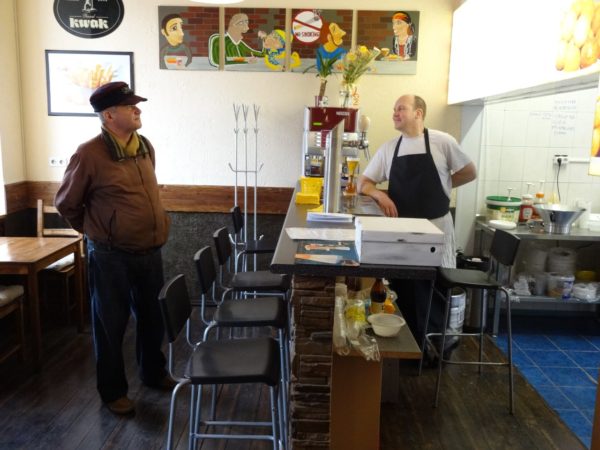 Когда мальчику исполнилось восемь месяцев, Доминик и Надя открыли семейный бар с лучшим в городе картофелем фри. Корнеплоды для него они выращивали сами, поэтому он и получался таким вкусным — настоящим, а не из полуфабрикатов. Впрочем, как и бельгийские блюда — сырные шарики, бутерброд «Крок-мусьё» и традиционные вафли. Готовил Доминик сам, пока Надя встречала гостей. В первое время супруги всё в баре делали сами.