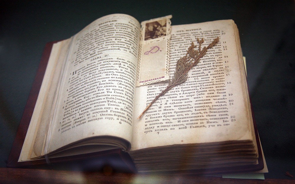 Он никогда не расставался с ней и брал с собой в дорогу. Во время творческих ночных бдений она лежала на виду на письменном столе. Когда ложился спать, всегда клал так, чтобы Евангелие было под рукой. По этой книге он поверял свои сомнения, загадывал свою судьбу и судьбы своих героев, желая, как и гадавший по «старой Библии» герой поэмы Н. Огарева «Тюрьма»,