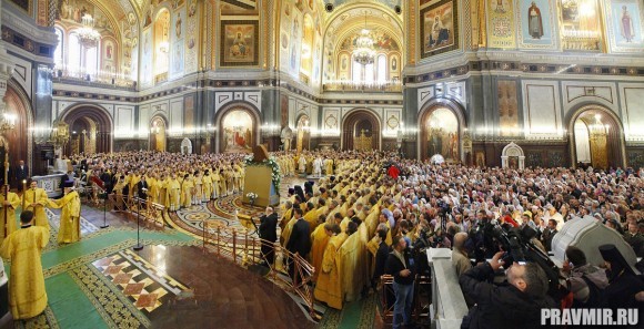 Предстоятель Русской Церкви совершил Божественную литургию в кафедральном соборном Храме Христа Спасителя — храме-памятнике героям войны 1812 года.