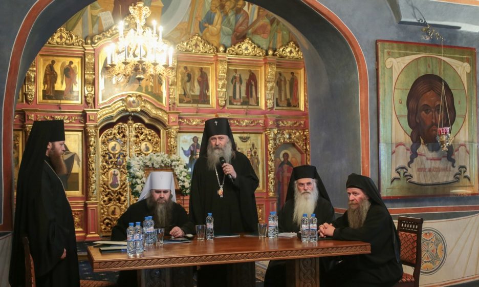 В докладе «Монашеское делание как обретение внутреннего Царствия Божия»митрополит Нижегородский и Арзамасский Георгий напомнил, что Царствие Божие есть благодатное состояние души, пребывающей с Богом, ради Которого стоит отказаться от самых дорогих сердцу вещей и привязанностей. Наиболее решительное и определенное отречение предполагается в принятии монашества. Ради самого главного в жизни – Бога – инок жертвует наиболее ценным в глазах людей мира сего – своеволием, плотским наслаждением и материальным богатством. Его Высокопреосвященство подчеркнул, что монашеские обители призваны быть оазисами Царствия Божия на земле. Высокопреосвященнейший митрополит Георгий затронул актуальный вопрос о крайностях монашеской жизни: внутреннего подвига без деятельной любви, или внешней деятельности без сокровенной духовной жизни. «Попытка создать вокруг себя Царствие Божие без создания его прежде в самом себе неизменно обречена на неуспех… В то же время и самонадеянный уход в самого себя в поисках Царствия Божия без прохождения духовного научения под руководством опытного наставника в общежительном монастыре чреват самообольщением», − отметил Его Высокопреосвященство. Помочь избежать этих опасностей при прохождении монашеского поприща может лишь послушание игумену и следование монастырскому уставу. «Устав обители является для иноков благодатной защитой, нарушение же его ведет к риску потерпеть поражение в невидимой брани с врагом», − сказал в заключение своего выступления владыка Георгий.