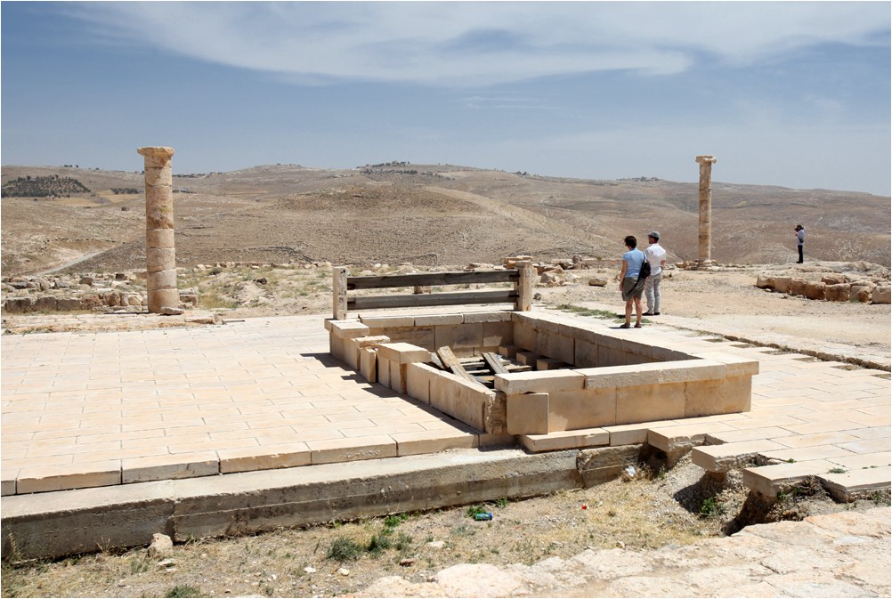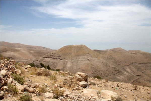 Мукавир, развалины крепости Махерос (или Махерон). По преданию, здесь располагался летний замок царя Ирода Антипы, одного из сыновей Ирода Великого, где провёл последние дни своей жизни пророк Иоанн Предтеча. По мере того как наш автобус поднимается по серпантину вверх, от берега Мёртвого моря в горы, становится понятно, почему Ирод выбрал это место для своей летней резиденции: здесь не так жарко, как внизу. Хотя «не так жарко» — это очень условно: солнце палит нещадно, и только ветерок немного спасает от духоты; просто внизу ещё хуже. Да и с точки зрения фортификации всё оправданно: крутые склоны горы делают крепость на её вершине практически неприступной.