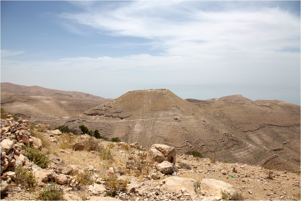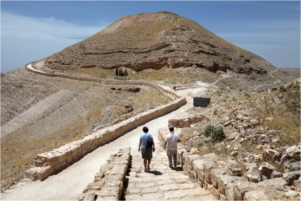 Внизу слева вьётся ниткой другая дорога. Рядом как будто кто-то рассыпал небольшую пригоршню чёрного риса — это стадо овец пасётся на склоне. Пока ещё в палитре художника, который принялся бы писать пейзаж этих гор, должна присутствовать капля зелёной краски, трава не выгорела окончательно. Но пройдёт еще пара недель, и эти склоны станут куда менее живописными. Хотя, возможно, вечерами, на закате, тут может быть по-настоящему красиво. Царь Ирод, каким бы он ни был человеком, вероятно, не был чужд эстетических наслаждений.