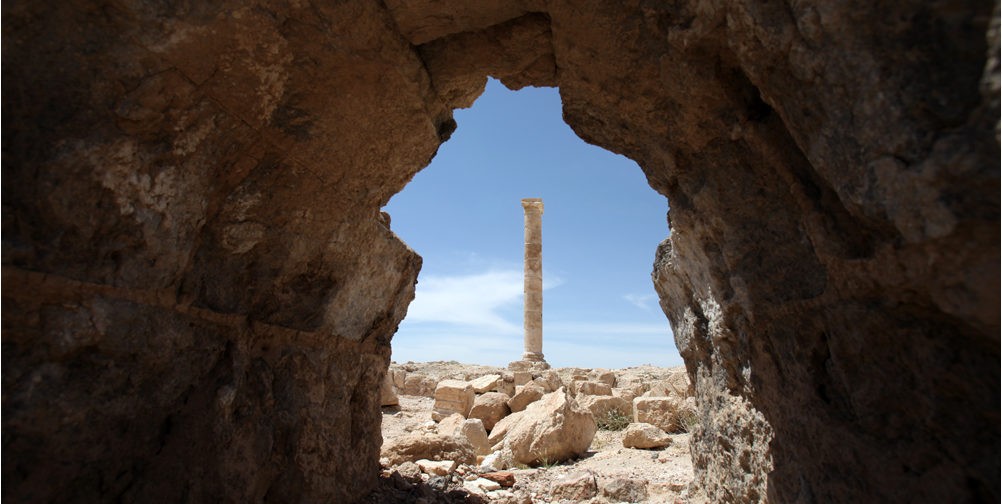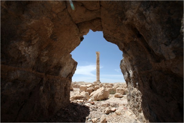 Прямо перед нами — геометрически правильная гора с плоской, будто срезанной, вершиной. Мы рассматриваем её «профиль». Он похож на запись кардиограммы: неровная линия древних руин прерывается двумя всплесками — это две одинокие колонны стоят недалеко друг от друга. Любопытно: в сети можно найти фотографии прошлых лет, на которых видно, что колонн было больше, почти десяток. Разрушились? Разобраны?